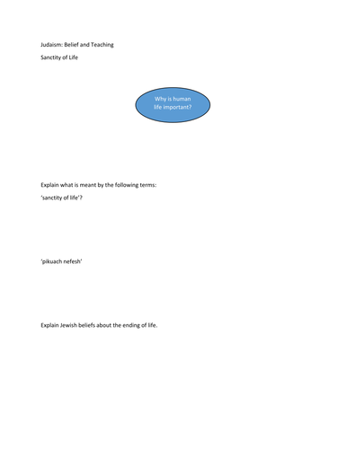 Re Aqa Gcse Judaism Beliefs Sanctity Of Life Teaching Resources